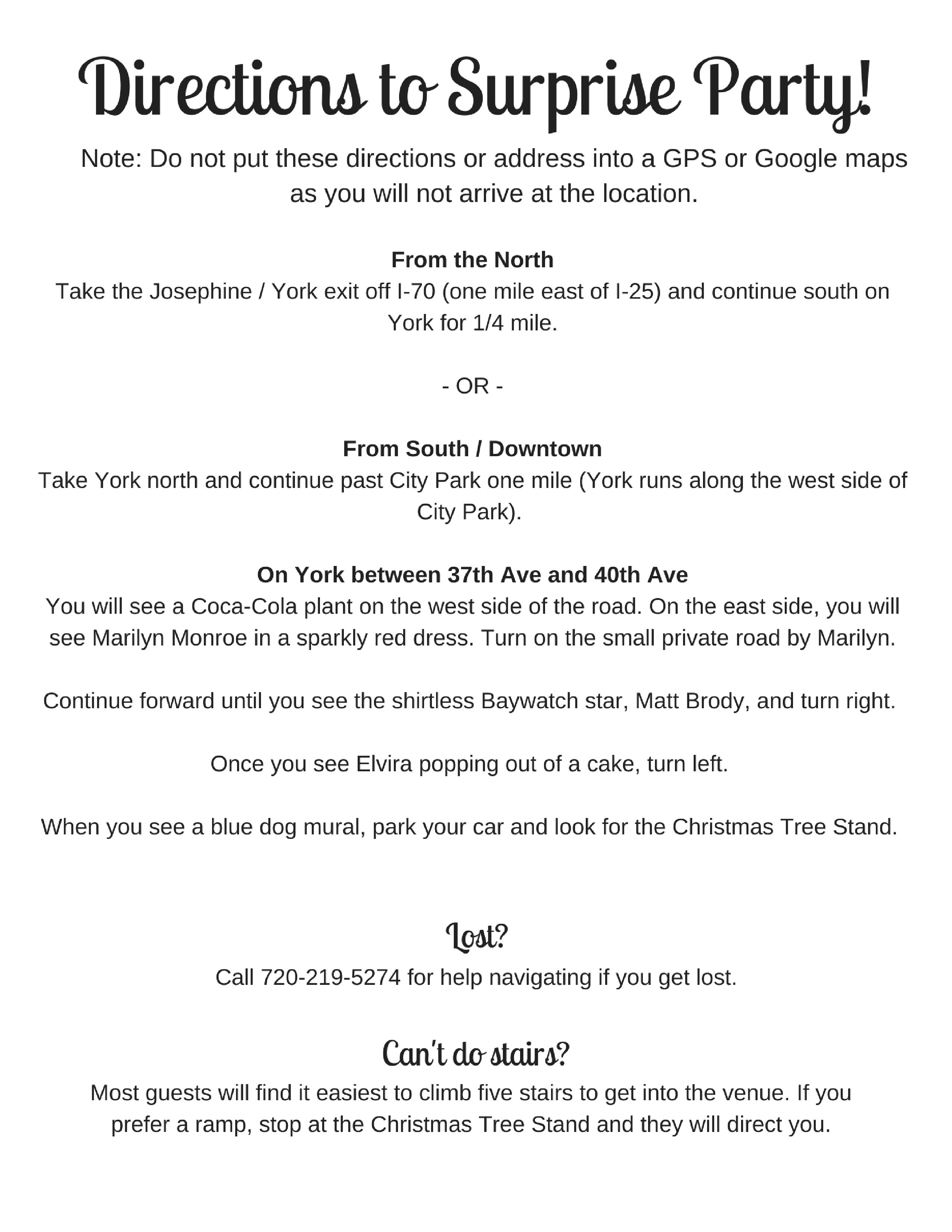 - Use these directions to get to the surprise party!